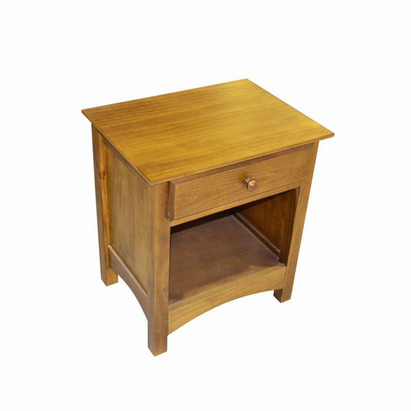 Mesa de luz con 1 cajón y 1 zapatero. Fabricada en pino, lustre miel.