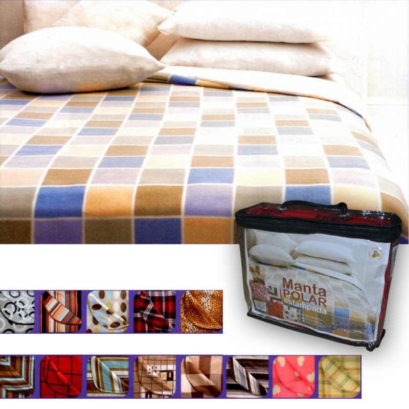 Manta polar estampada. 2 plazas Queen. Motivos varios.