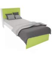 Cama línea juvenil, 1 plaza, confeccionada en melamina. Blanca y verde.